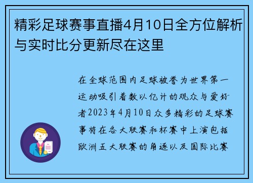精彩足球赛事直播4月10日全方位解析与实时比分更新尽在这里